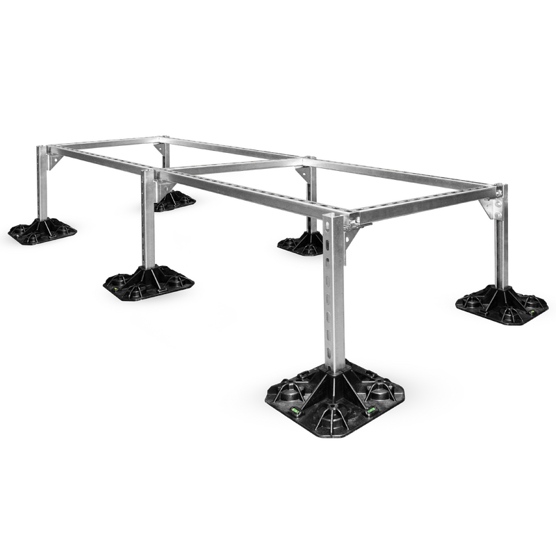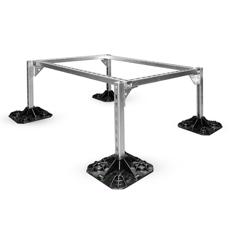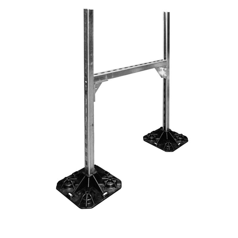Podstawa dachowa ST-ROF-SET-H, zestaw podpór, wsporników i ram do instalacji przewodów wentylacyjnych oraz urządzeń wszelkiego typu montowanych na dachach budynków. Dodatkową zaletą jest prosty i szybki montaż. Dopuszczalne obciążenie ciągłe wynosi 150kg.